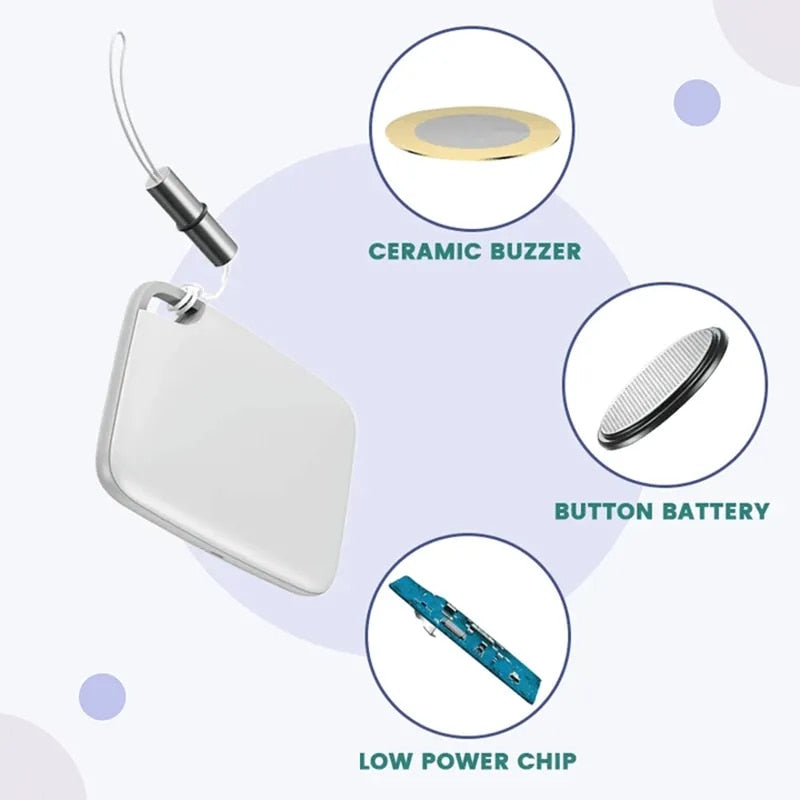 - Anti-Loss Functionality: The smart tracker helps you keep track of your belongings and prevent loss. It utilizes advanced technology to establish a connection between the tracker and your smartphone via Bluetooth. By using a dedicated mobile app, you can set up alerts and receive notifications on your phone when the tracker and your belongings get separated beyond a certain distance.