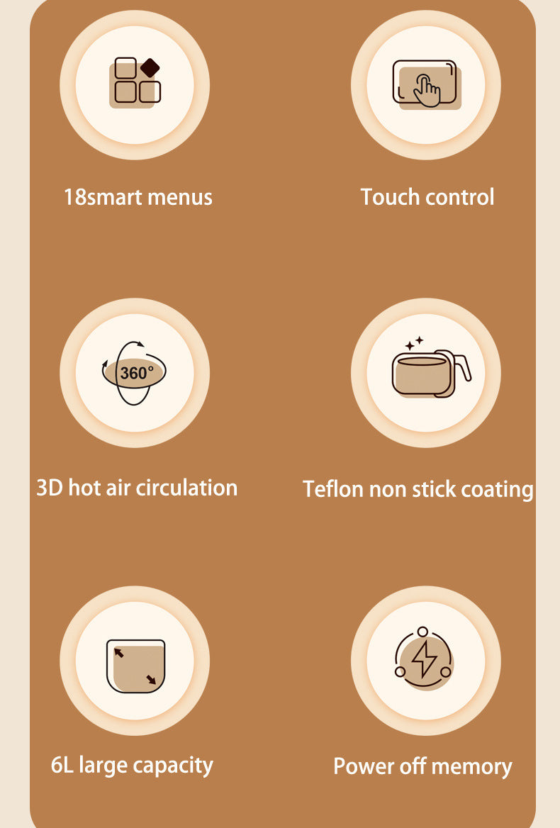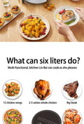 - Generous 6L Capacity for Family Meals: Cook mouthwatering meals for the whole family with the Digital Large Capacity Air Fryer. With its spacious 6L capacity, you can easily prepare generous portions of your favorite dishes, from crispy fries to succulent chicken wings, without worrying about space constraints. Whether you're cooking for one or hosting a family gathering, this air fryer ensures you can create satisfying meals in no time.