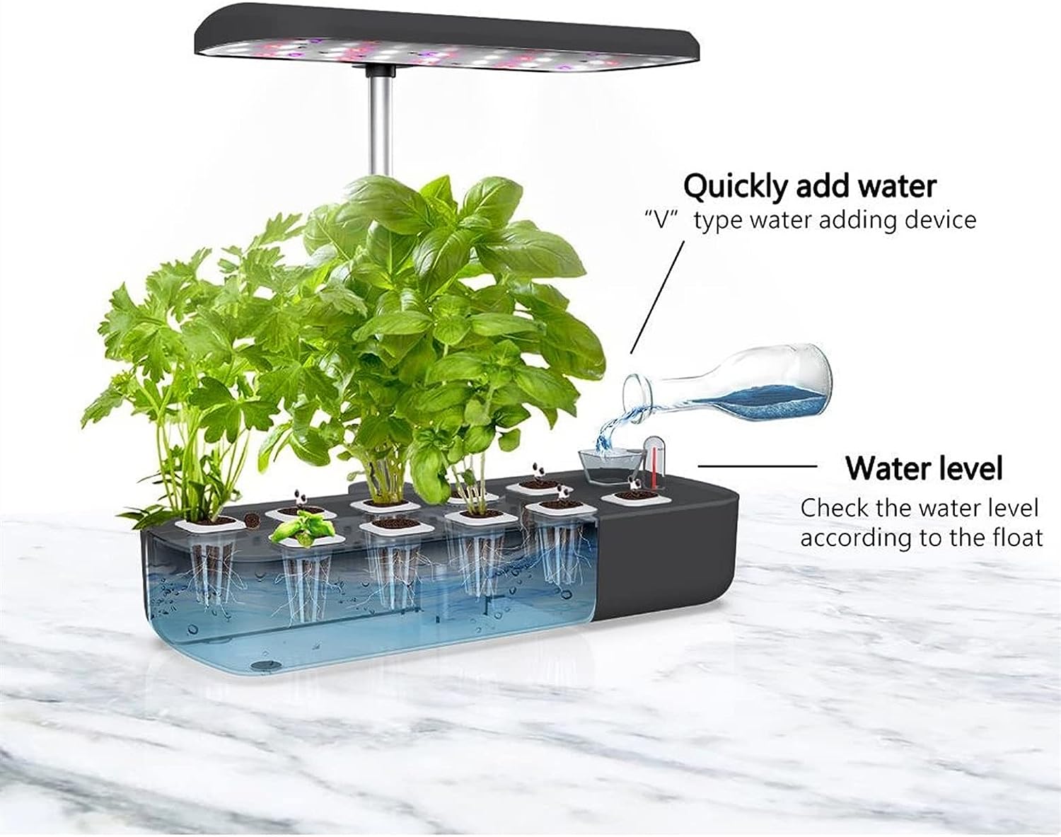 - Self-Watering Capability: The pot is designed with a self-watering mechanism that ensures the plants receive an adequate water supply. It usually includes a reservoir or water tank that holds the nutrient solution, and the pot automatically delivers the right amount of water to the plant's roots based on its needs.